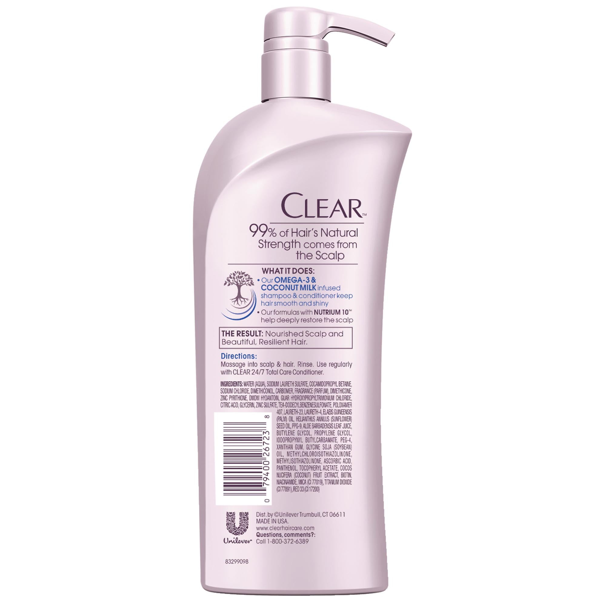 Clear 24 7 Total Care Shampoo With Pump With Omega 3 And Coconut Milk For Dry Scalp 21 9 Oz Walmart Com
