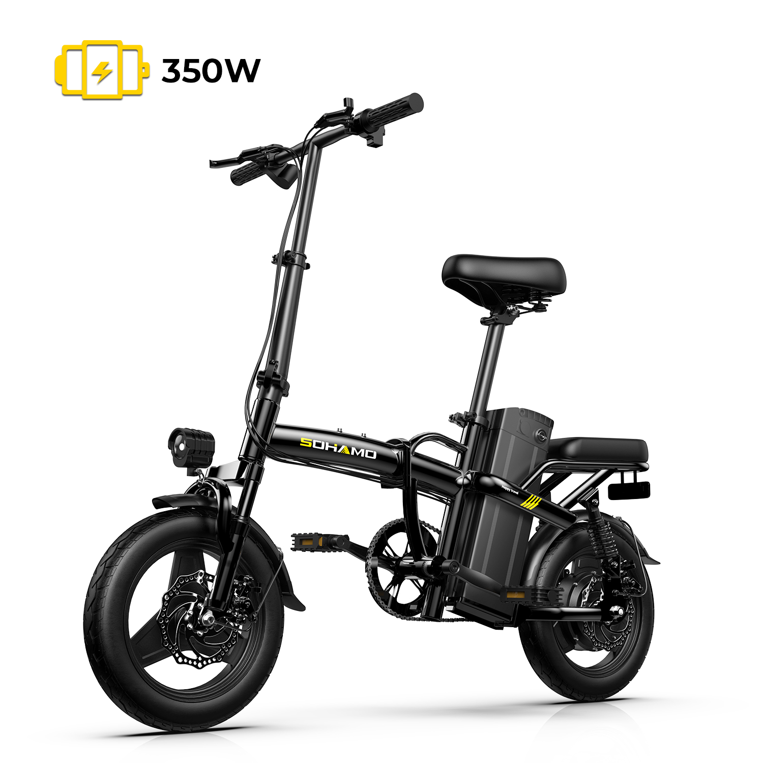 Sohamo Bicycles 14 48v Foldable Mini Electric Bike 350w Motor Full Suspension 16ah Removable Battery City Commuter E Bike Walmart Com